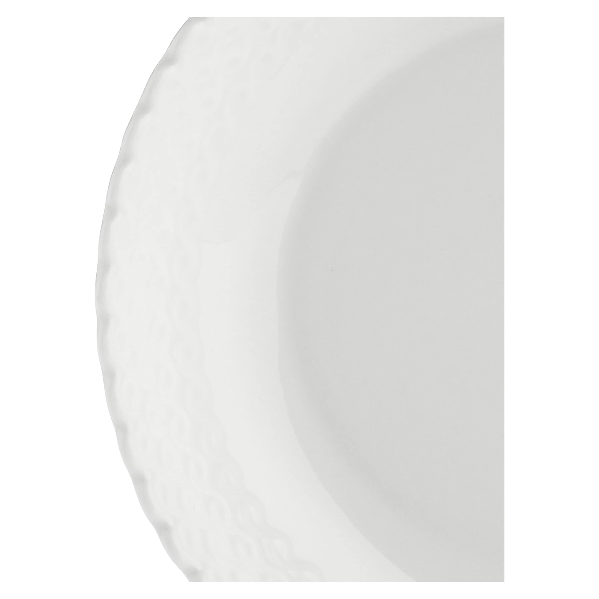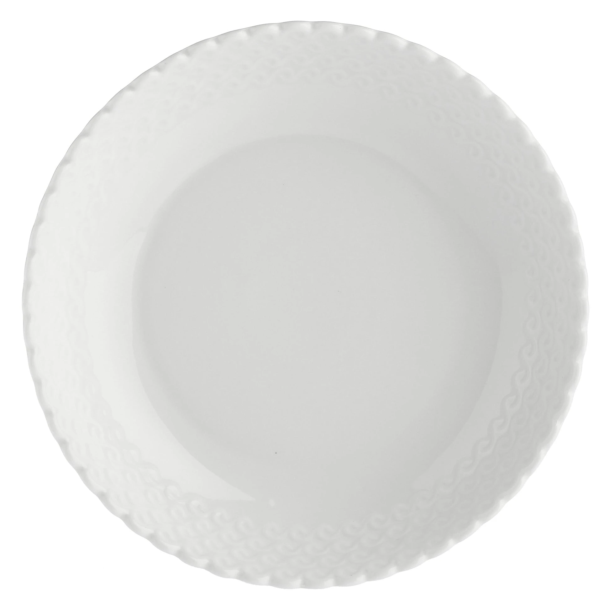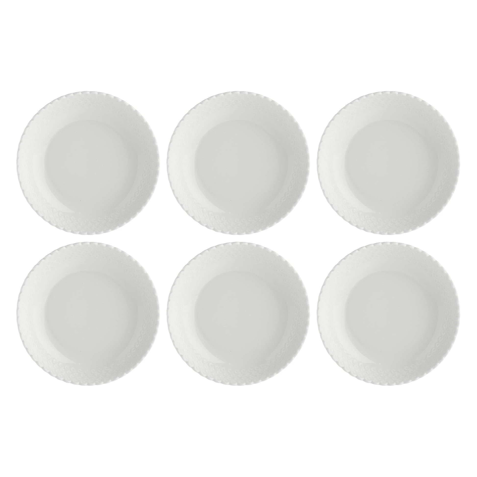 SpäťSada 6 hlbokých tanierov Momenti s priemerom 20 cm. Biely porcelán so zvlneným okrajom pôsobí jemne a elegantne.