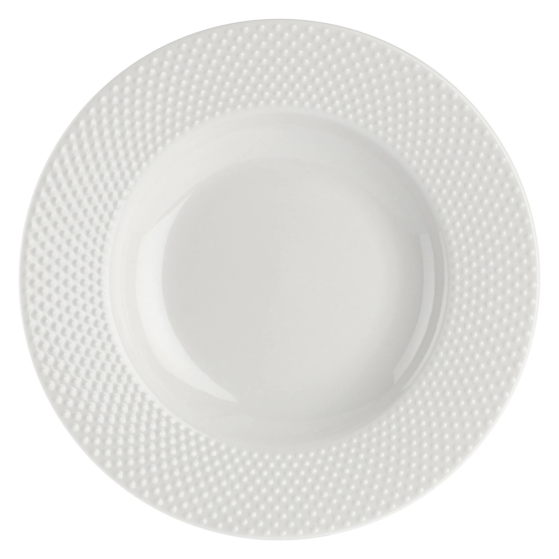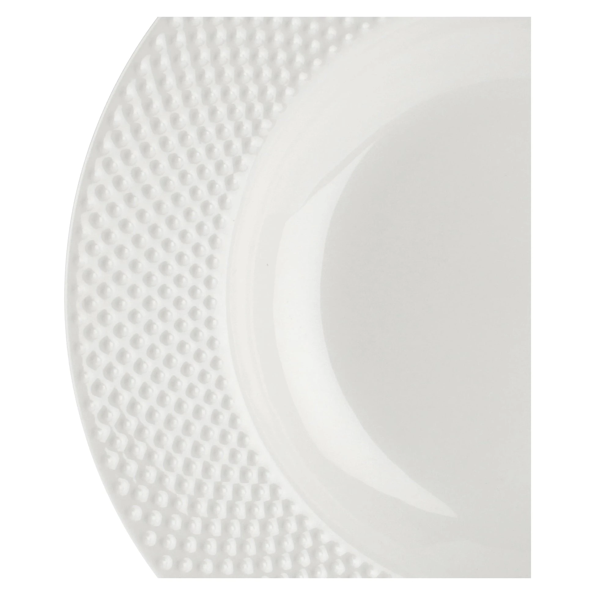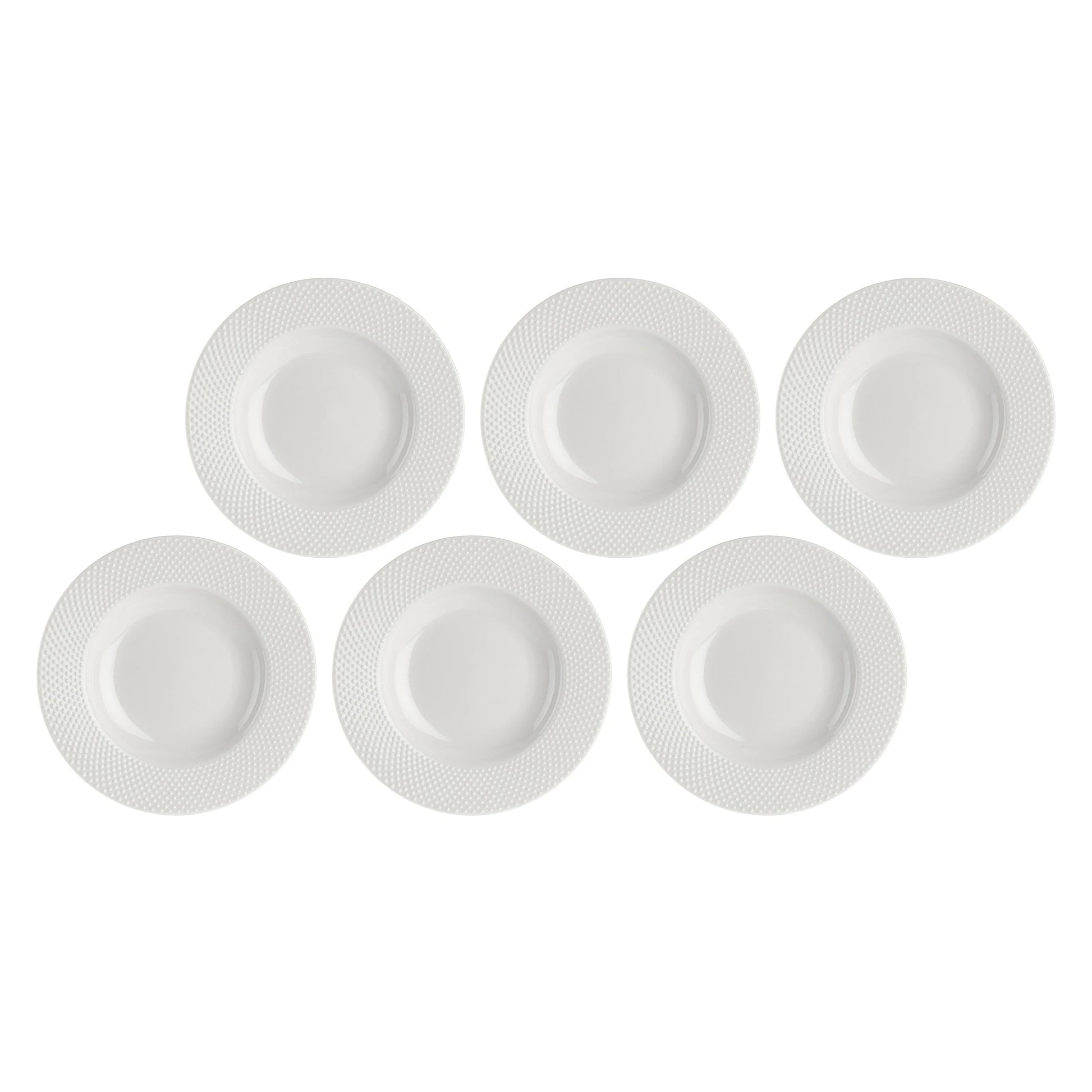 SpäťSada 6 hlbokých tanierov Richiamo s priemerom 22,5 cm z kvalitného porcelánu. Čistá biela farba je doplnená jemným reliéfnym bodkovaným dekorom.