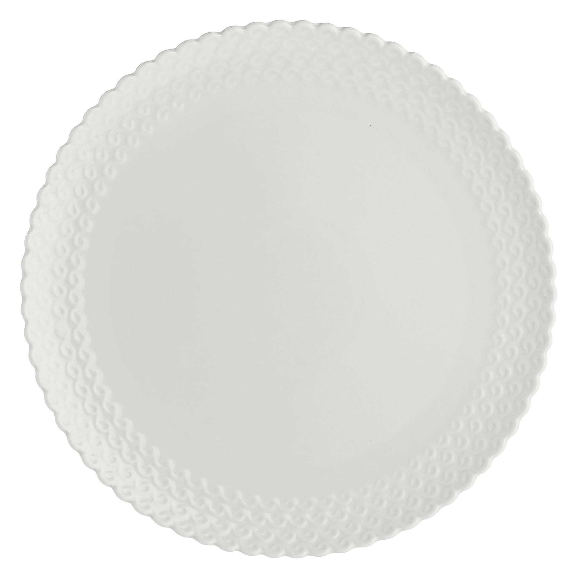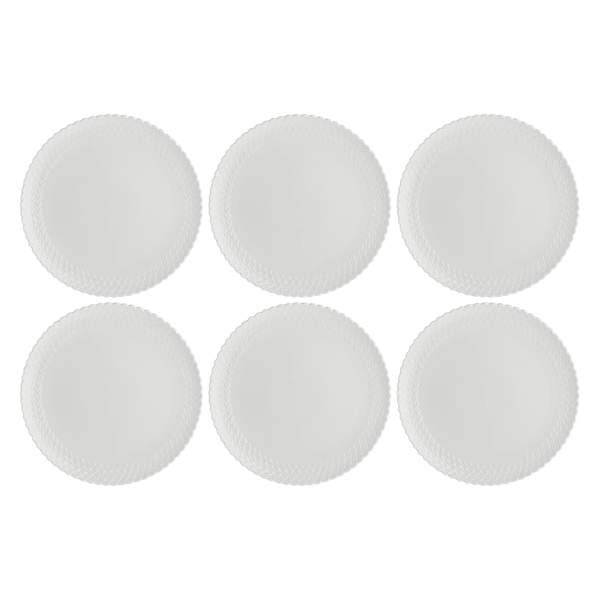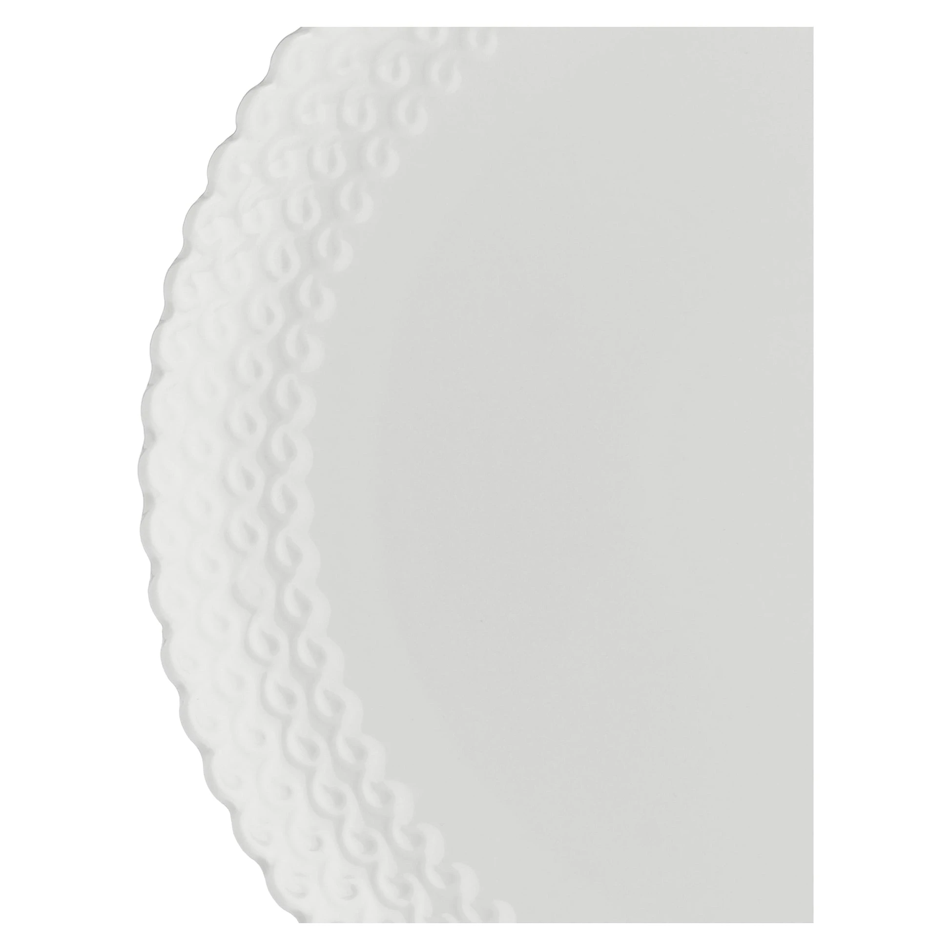 SpäťSada 6 plochých tanierov Momenti s priemerom 26 cm. Biely porcelán so zvlneným okrajom dodáva prestieraniu jemný a stále aktuálny vzhľad.