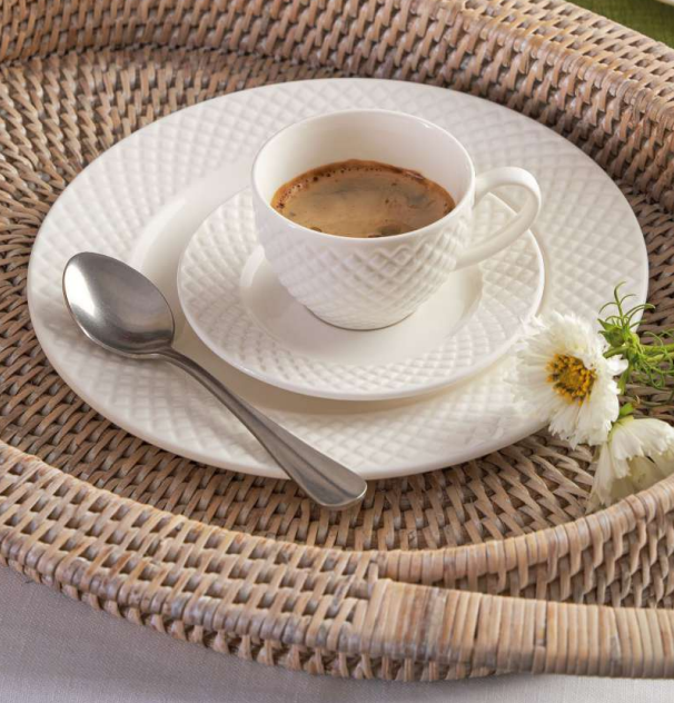 SpäťSet 6 porcelánových šálok s podšálkami z kolekcie Tavola Reale s výrazným geometrickým reliéfom