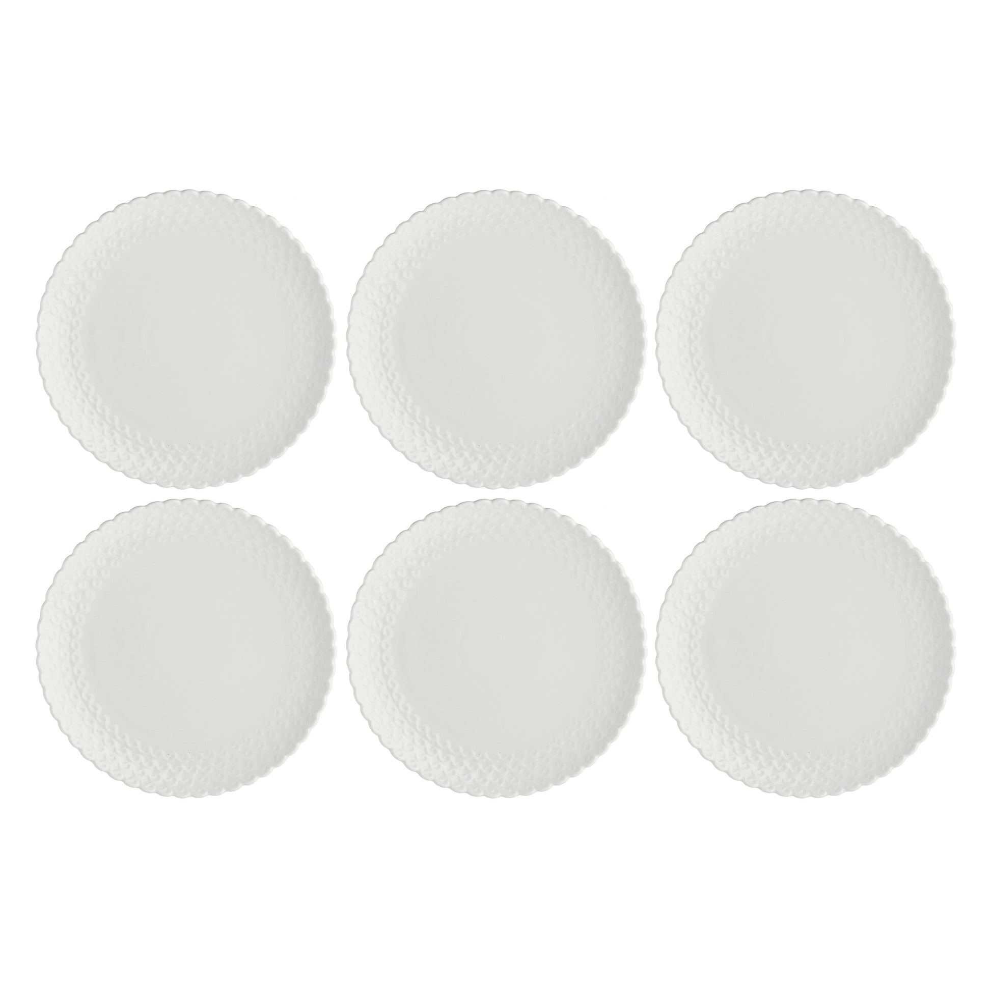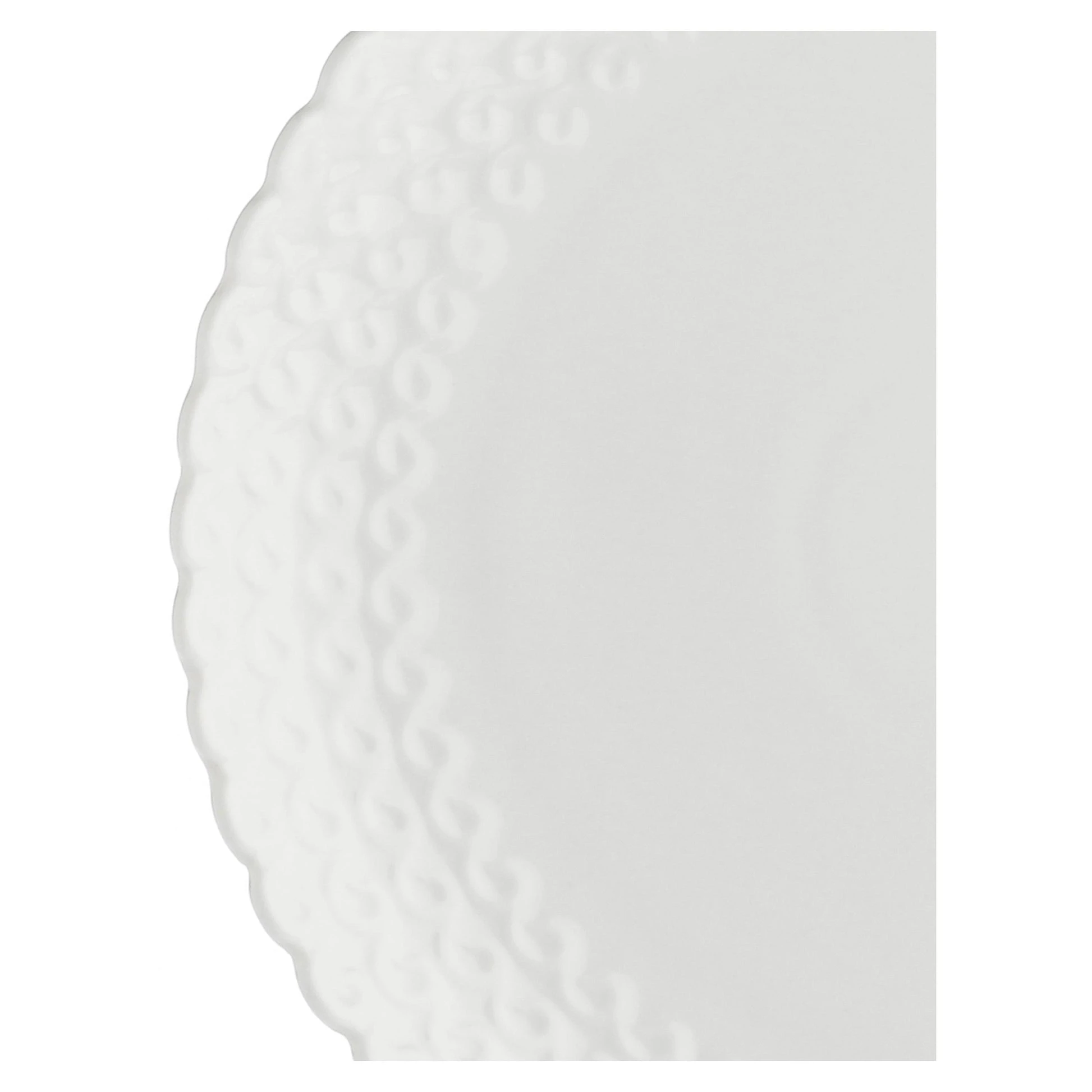 SpäťSada 6 ovocných tanierov Momenti s priemerom 20 cm. Biely porcelán so zvlneným okrajom vytvára jemný a elegantný vzhľad.