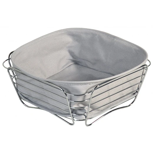 SpäťElegantný košík na pečivo z nehrdzavejúcej ocele s vyberateľnou textilnou vložkou. Praktický doplnok na servírovanie,