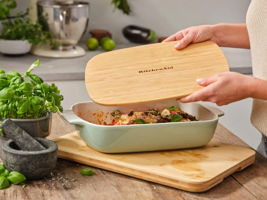 - Elegantný dizajn, ktorý ozdobí stôl: Okrem svojej praktickosti sa pekáč KitchenAid pýši aj elegantným a nadčasovým dizajnom. Je nielen funkčnou nádobou na pečenie, ale aj krásnym servírovacím kúskom, ktorý dodá šmrnc každému jedálenskému stolu. Spojenie formy a funkcie v pravom štýle KitchenAid, ktorý sa ľahko kombinuje s ostatnými prvkami vašej kuchyne.