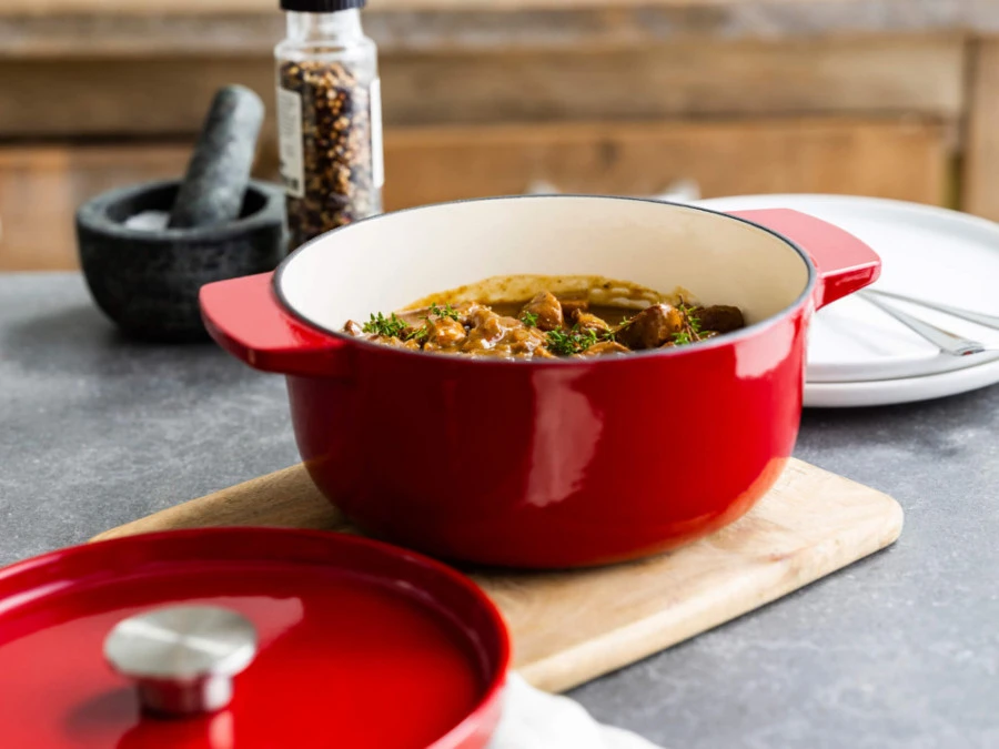 - Energetická efektivita: Vďaka vynikajúcim tepelným akumulačným vlastnostiam liatiny hrniec udržuje teplo dlho po odstavení zo sporáka, čo šetrí energiu a udržiava jedlo teplé až do podávania. Tým prispieva k šetrnejšej prevádzke vašej domácnosti.