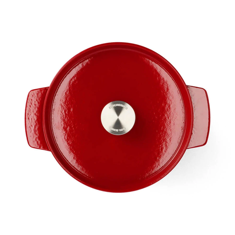 - Odolný smaltovaný povrch: Vnútorná i vonkajšia strana hrnca je pokrytá vysoko odolným smaltom, ktorý zabraňuje prilepeniu jedla, uľahčuje čistenie a chráni liatinu pred koróziou. Zároveň nereaguje s potravinami, čím zachováva ich prirodzenú chuť a arómu.