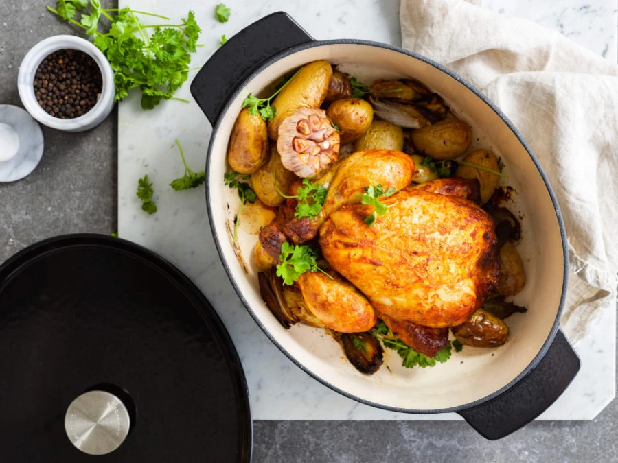 - Výnimočný smaltovaný povrch: Vnútorný smaltovaný povrch nielenže zabraňuje pripaľovaniu a uľahčuje čistenie, ale tiež chráni liatinu pred koróziou a absorpciou pachov. Vďaka tomu si hrniec zachová svoj vzhľad a funkčnosť aj po mnohých rokoch intenzívneho používania.