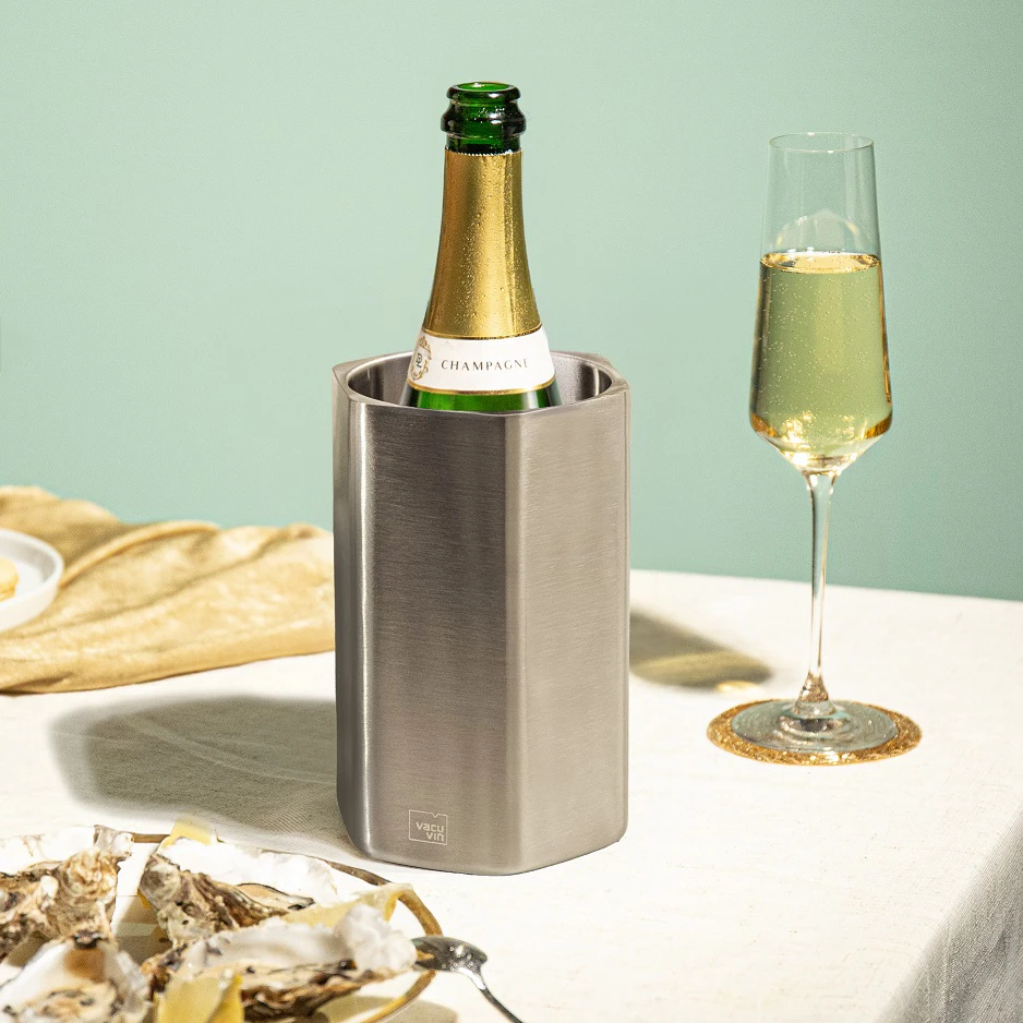 Fľašu vína alebo šampanského jednoducho vychlaďte v chladničke a následne ju umiestnite do chladiča. Dvojstenná izolovaná konštrukcia z nehrdzavejúcej ocele potom zabezpečí udržanie teploty. Brúsené prevedenie ocele navyše bude ladiť s akýmkoľvek interiérovým či exteriérovým prevedením.